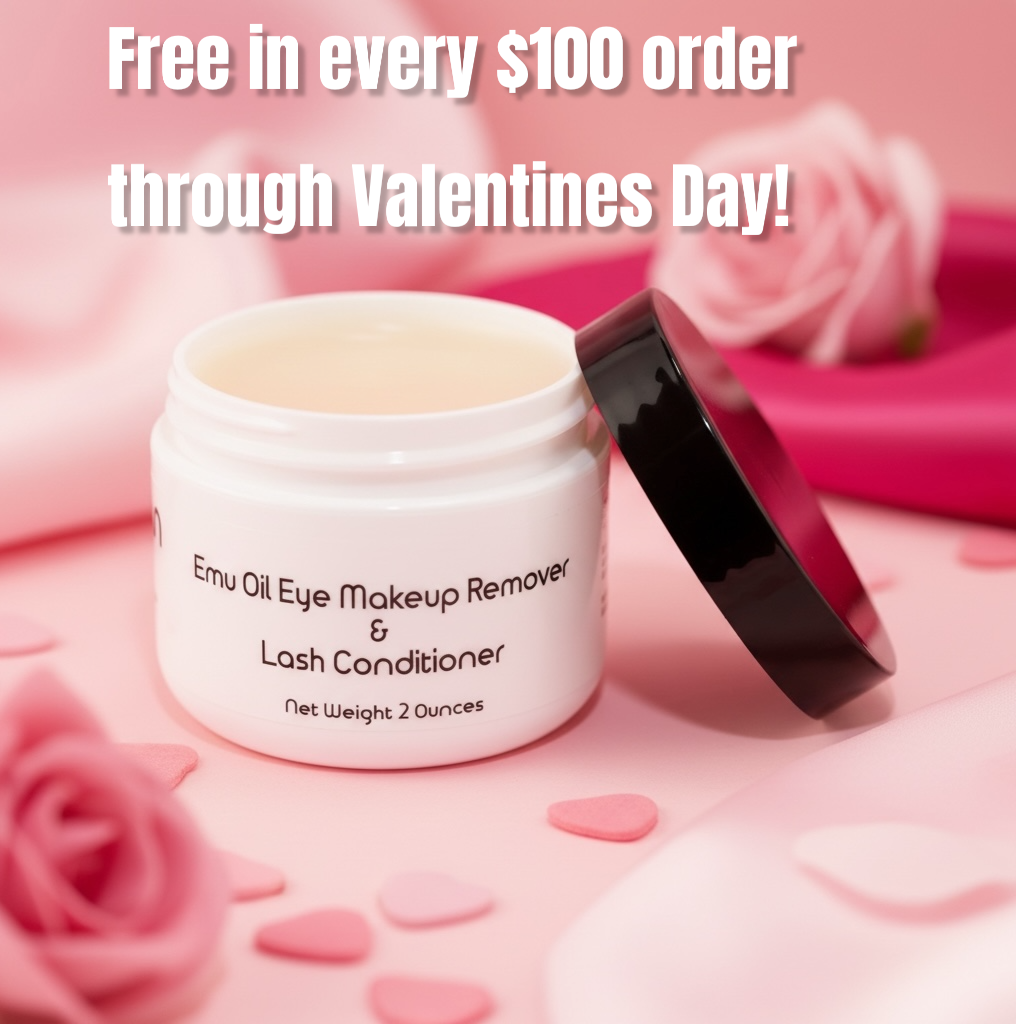 We’ve taken our very popular eye makeup remover to a new level. Emu oil is rich in essential fatty acids, especially oleic acid. It penetrates deep into the skin, stimulating collagen and lazy hair follicles. Eye lashes thin for a myriad of reasons regardless of age but age related hormonal issues or illness can wreak havoc on your once healthy, high functioning hair follicles. We decided to double up those lash stimulating characteristics with Ostrich butter. We swiped out the old, temperamental Shea butter with a high performance butter to really make it count. Regardless of your age you’ll appreciate the light conditioning left behind on the eye area with both the emu oil and ostrich butter teaming up to show those follicles who’s boss!